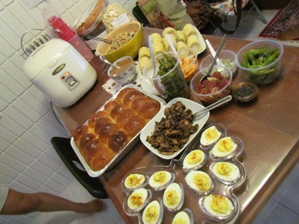 写真の他にもこのテーブルに乗り切らないほどのいろいろな食べ物がそろい