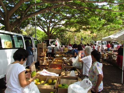 この日Mangoさんは友人達とホームパーティーを開く予定で準備に忙しい~ フレッシュな食材を求めファーマーズマーケットへ行くので僕もついて行きました~