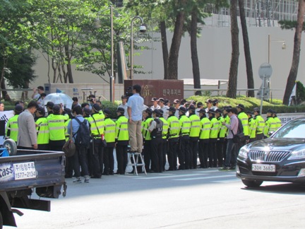 たくさんの警官が厳重な警備を敷いている一角がありました