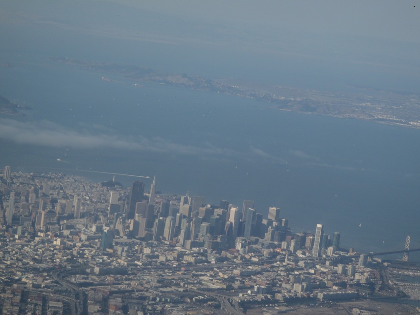 今回は窓際の席を指定したので 霧の晴れたSFの町並みがきれいに見えました 普通のときはそれほど心配なのですが飛行機に乗ると妙にトイレの回数が増えてしまうので