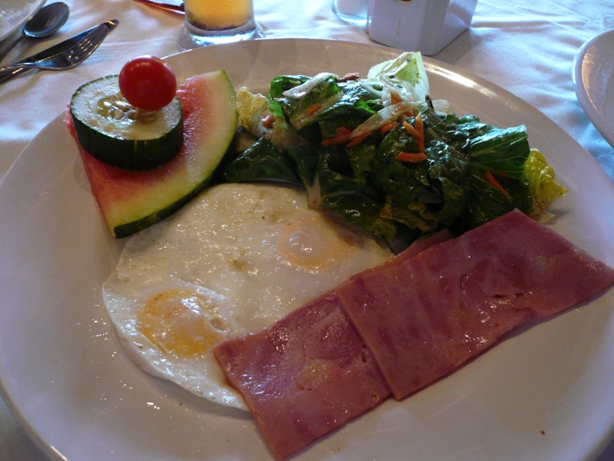 いろんな食べ物があって 見ているのは楽しいのですが 実際食べるとなると・・・ (;-_-) =3 フゥ という感じでしたので 無難に目玉焼きと パンを齧っておしまいにしてしまいました・・・