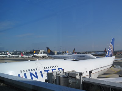 飛行機は遅れに遅れ 乗り継ぎ経由地のドイツ フランクフルトではタッチダウン16:15に到着