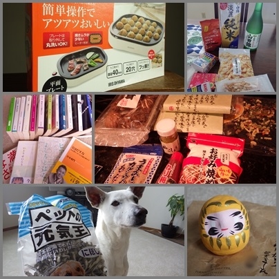 彼にはお酒&おつまみセット それにドトールコーヒーです(笑) ハードカバーの本はKさんから頂いた貴重な新刊ありがとうございます その隣は日本食材さまざま