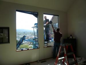 作業を始めて 3時間後にはきれいな 窓ガラスがはめられました