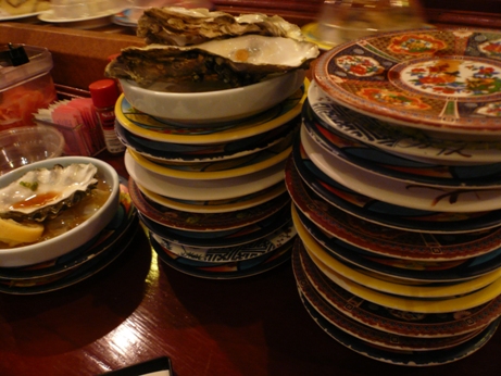 せっかくの記念日に 回転寿司で こんなに食べてしまうカップルって・・・どうよ・・・ (ーー;).。oO