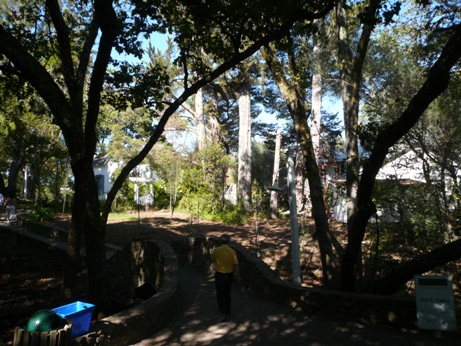 入り口をはいって たくさんの樹に囲まれた中庭を通って