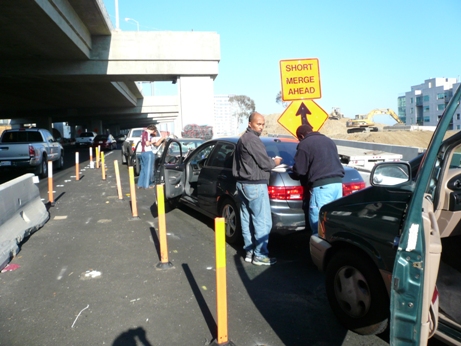 その入り口で 列の最初の車が急ブレーキで 次々に玉突き事故が発生したのです