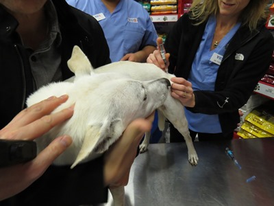 このお店は 週に一回こうやって獣医さんが来てくれて比較的手ごろな値段でこういう予防接種なんかをしてくれるのです♪
