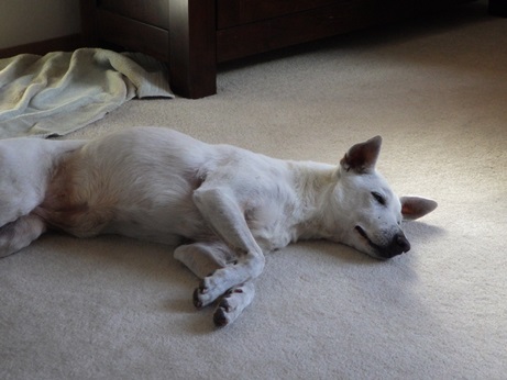>さて、 Coco ちゃんも丸4年なんですね。おめでとうございます。ってことは、うちのわんこの方が3ヶ月ほど早く収容所から救出されているのですね。うちは南部の kill shelter出身、年齢不詳ですが、当時1ー2歳と言われたので、現在5ー6歳のはず。でも、永久に5歳のままでいてほしい。ほんと、元気で長生きして欲しいです。