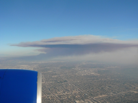 しばらくすると LAの上空に差し掛かったのですが LAの上空はどんよりとした雲に覆われていると思ったら