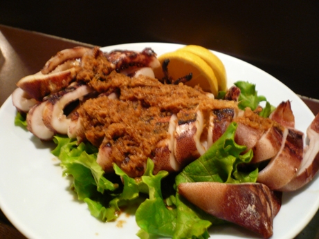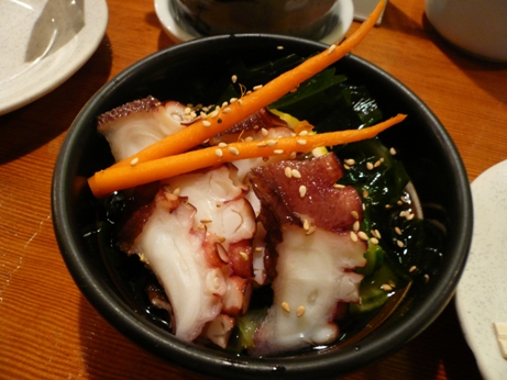 タコ酢にイカの丸焼きを前菜として頼んで
