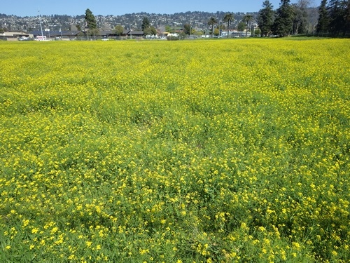 空地いっぱいに菜の花が咲き乱れ