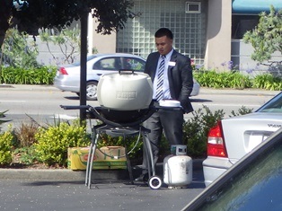仕事の一環なのだろうか? 当番で今日この人がBBQ担当になったのだろうか?