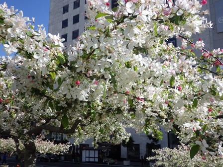 Unionスクエアーの方で桃系の花がSFダウンタウンの一角を薄い桃色に染めていました!