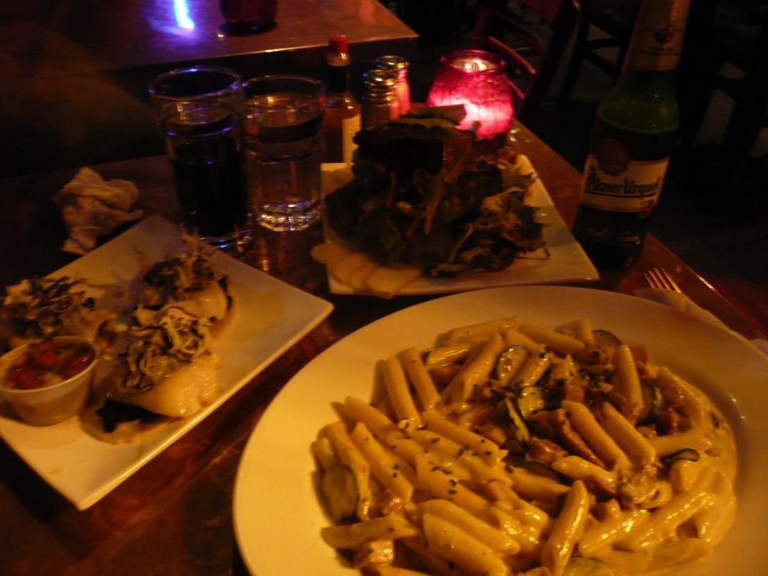 Dさんは フィッシュタコス(左) 僕は ペンネパスタ(右)でした