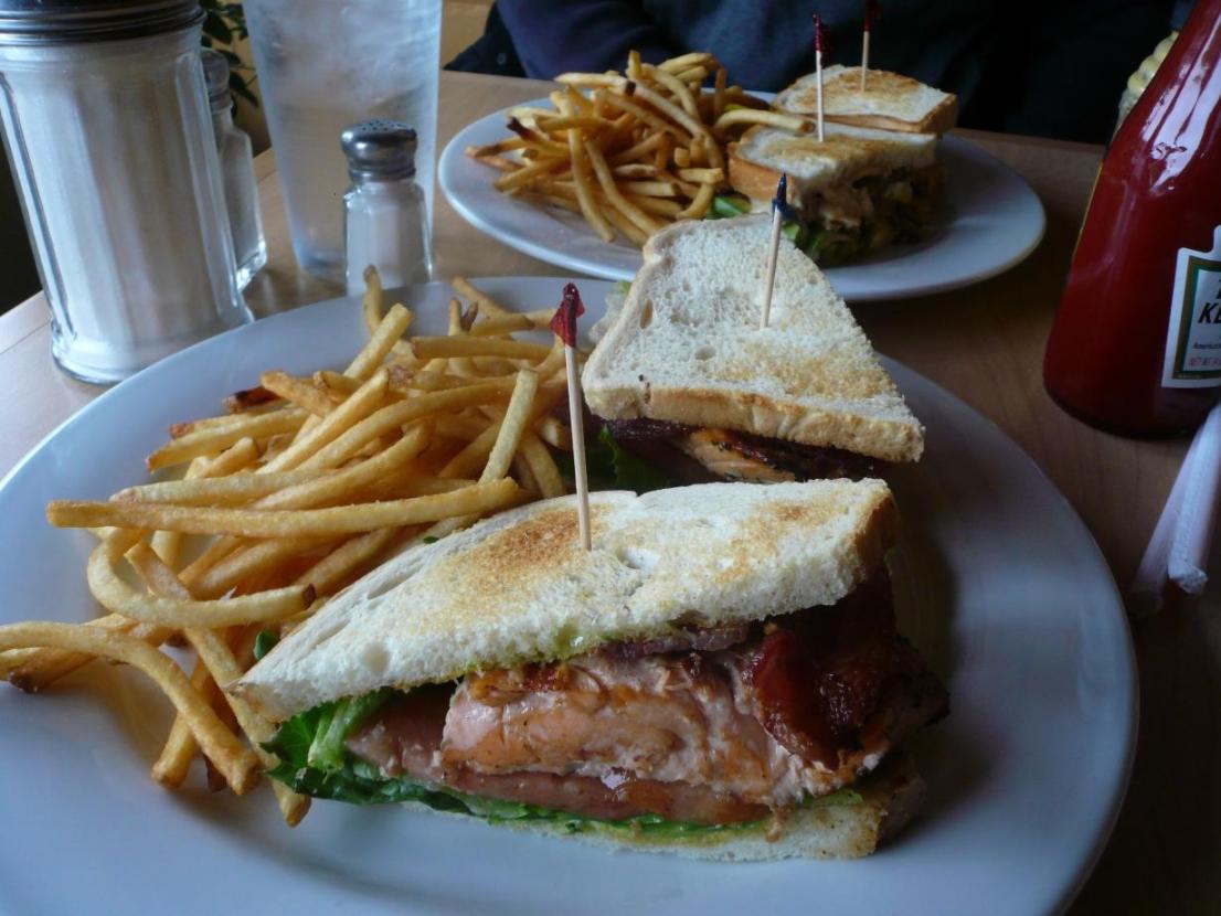 僕はサーモンサンドイッチ Dさんはチキンサンドイッチを頼みました