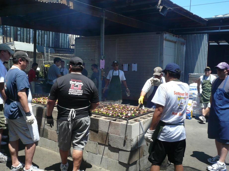 ガタイのいいおにいさんたちが調理しているのは照り焼きビーフ