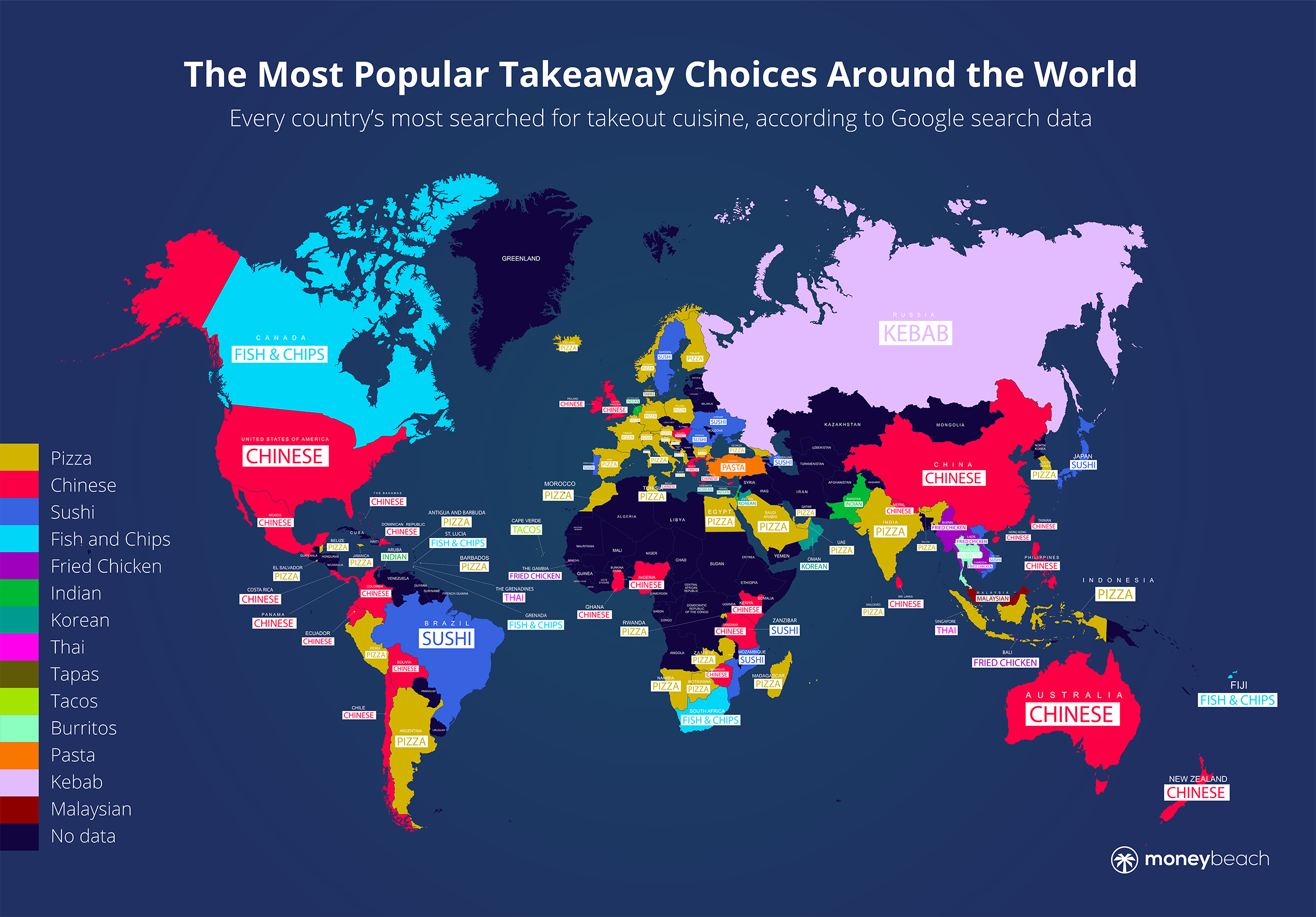 先日ニュースを見ていたらなかなか興味深いものがありましたので、こちらで皆さんに紹介したいと思います。どんな記事だったかと言いますと、国別で2020年にお持ち帰りで最も選ばれた食べ物というものなのです。(情報元) 2020年はご存じの通りほぼ一年がコロナ禍に見舞われてしまい、Lock-Downがあり、外出自粛があり、営業時間の短縮があり外食が控えられ家での食事が多くなりました。