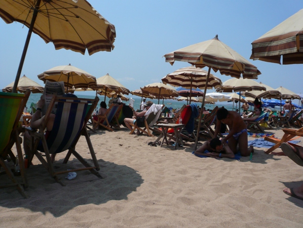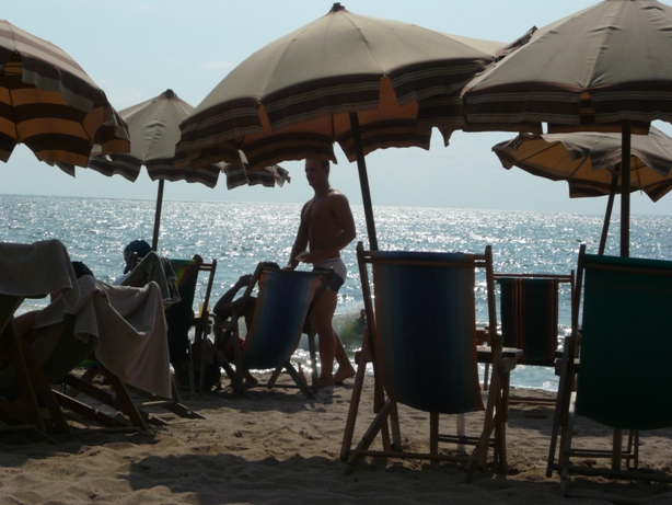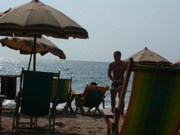 ふと横を見ると きわどいビキニの現地おにいさんが マッサージを勧め歩いていまして
