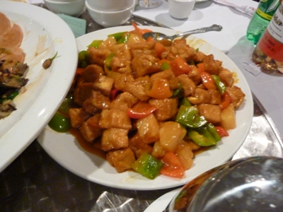 ちいさな四角い豆腐が揚げてあって 酢豚の豚肉の役割をしています