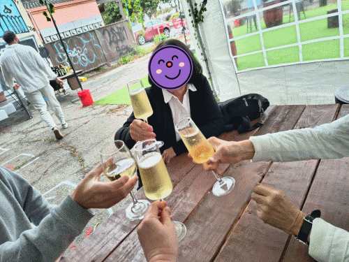 さて、肝心の周年イベントの方はというと……お店の準備が完全に追いついておらず、オーダーしても料理は来ない、ドリンクも遅い、そして極めつけは途中で雨まで降ってくるという、ほとんどカオスな展開に(笑)。それでも、集まったメンバーが皆「こういうのもまた楽しいよね」と笑い飛ばせるタイプだったおかげで、ワインを片手に大笑いしながら、最近の日本旅行の話をしたり、80代女性たちの“これからの人生設計”を聞かせてもらったりと、むしろ印象深く楽しいひとときになりました。