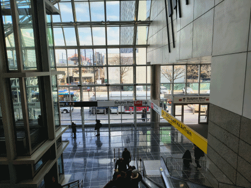 地下鉄は思ったよりも快適で、あっという間に空港のエアトラム駅に到着しました。Dさんも「これなら納得」と言わしめるほどの問題のない移動でした。