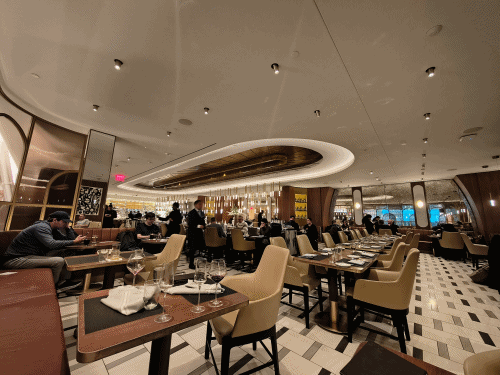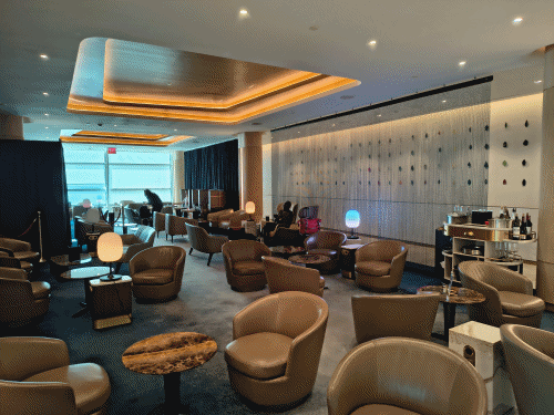 たくさんの異なるセクションに分かれたラウンジスペースがあり、大きな窓ガラスから空港が一望できる温室のような部屋、豪華なバーカウンターのあるセクション、カジュアルダイニングのセクション、大きなテレビがあるコーナー、コース料理が楽しめるレストランセクション、プライベートな会話ができる部屋、静かに休める場所がありました。