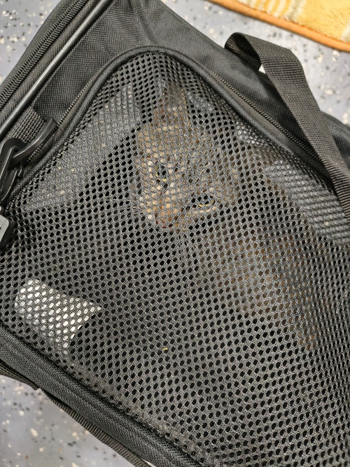 その日はケージごと暗いガレージに置いて一晩過ごしてもらい、翌朝一番にDさんがクリニックへ連れて行きました。Dさんが前日の惨劇をスタッフに伝えて注意を促してくれたおかげで、クリニック側では何の問題もなく避妊手術が行われ、その日のうちにSpottyは帰宅しました。