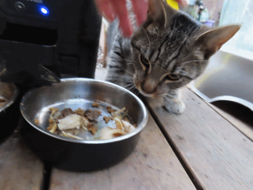 ご飯を食べている時だけは警戒のガードが緩くなるようで、夢中で食べているどさくさに紛れて僕が触っても、逃げないようになったのです!これは本当に嬉しい出来事でした。これからもっと慣れていってくれるといいですが、あまり期待しないようにしておきます(笑)。