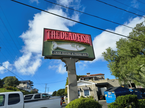 さて、今回お邪魔したのは「Dead Fish(死んだ魚)」という、なんとも変わった名前のレストランです。由来を聞くと、レストランの創設者が子供の頃、夕食のメニューを母親に尋ねた際、母親がぶっきらぼうに「死んだ魚よ!」と答えたのが強く記憶に残っていたことからこの名がついたのだとか。