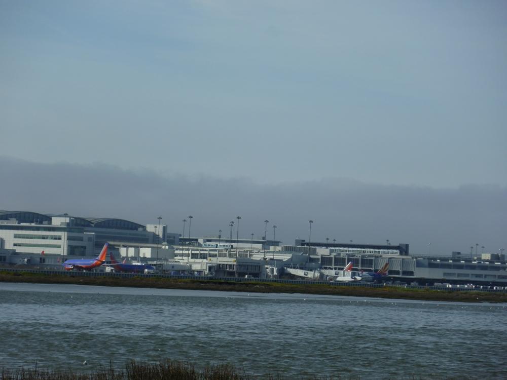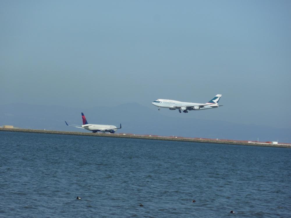 空港近くの飛行機が見える サンフランシスコベイに面した公園です