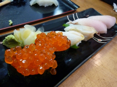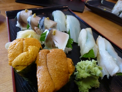 寿司美味しそうですねーー!!ウニがとけてなくて新鮮って感じですね。旬の季節(そちらでウニの旬な季節っていつですか?)ではないのかもしれませんが美味しそうです。他のネタも一つ一つが大きくて普通に寿司って感じに盛られてますしね。見た目も合格ですね。