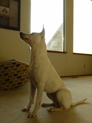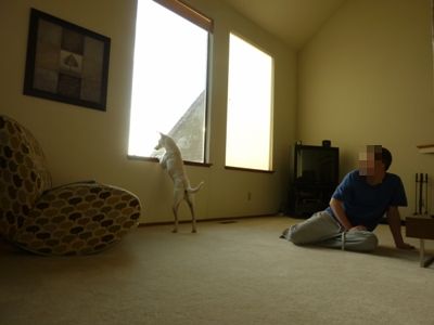 隣人宅が気に成る様で、ソファーに立ち上がって覗いてます。。。