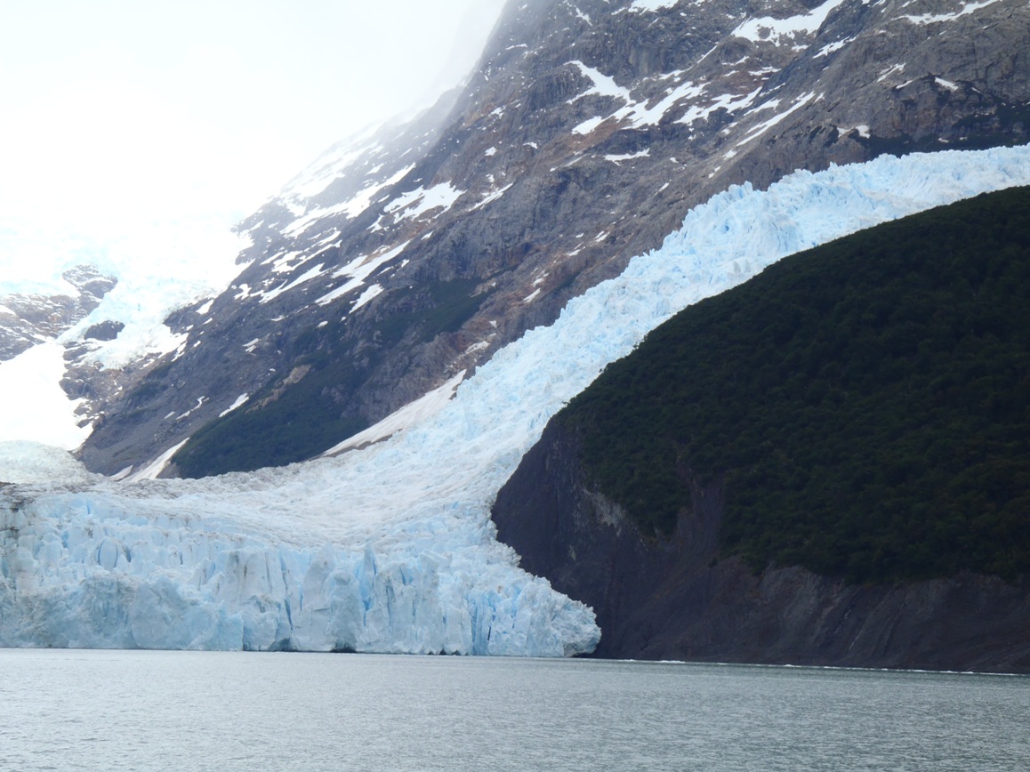 氷河の行き着く先端の対岸にマガジャネス半島がせり出しているため氷河の先端が陸に接岸しています