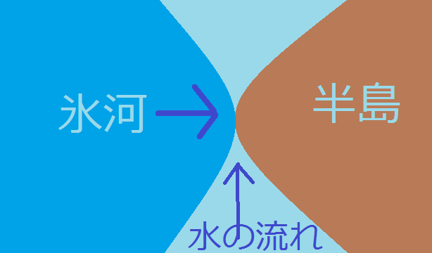 そしてこの氷河は離陸に接岸すると水の流れを止めてしまい