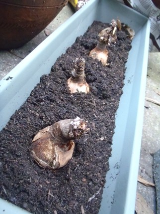 イギリスの実家の方で見事な花を咲かせていたいくつかの植物の球根や根を持って帰って