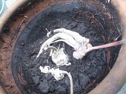 左側の大きいのがユリ 右側の小さいのが水仙なんだそうですこちらの根っこはダリアの根っこになるそうです