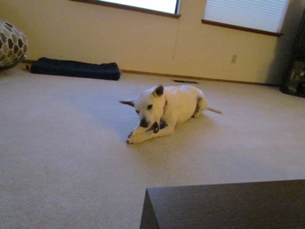 牛の皮でできたスナックをあげると そちらの方へ集中! 一生懸命食べてくれます♪