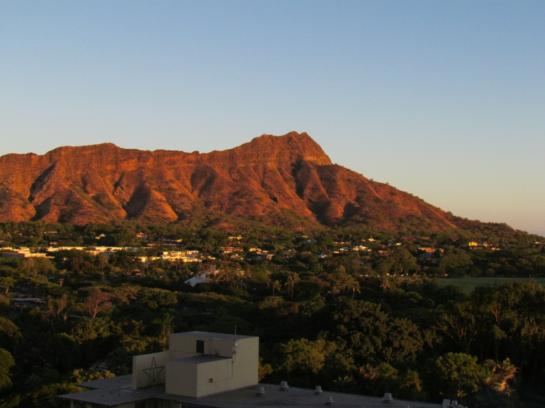 ダイアモンドヘッドの方も夕日を浴びてきれいに赤く染まっていました