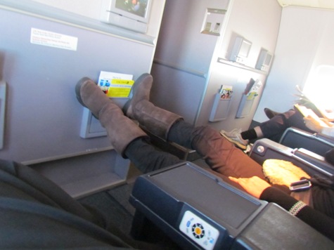 ファーストクラスも最前列ならとっても広く 余裕で足を伸ばすことができます