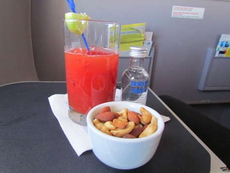 その後高度を上げて 飛行機が安定した頃 カクテルサービスが始まりました