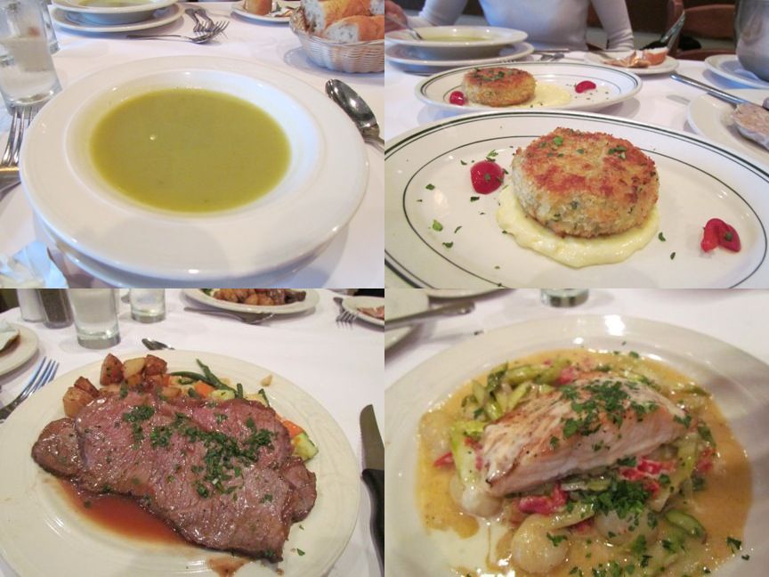 この日の料理は 左上からLeekのスープ カニのコロッケ(右上) これにサラダがつき
