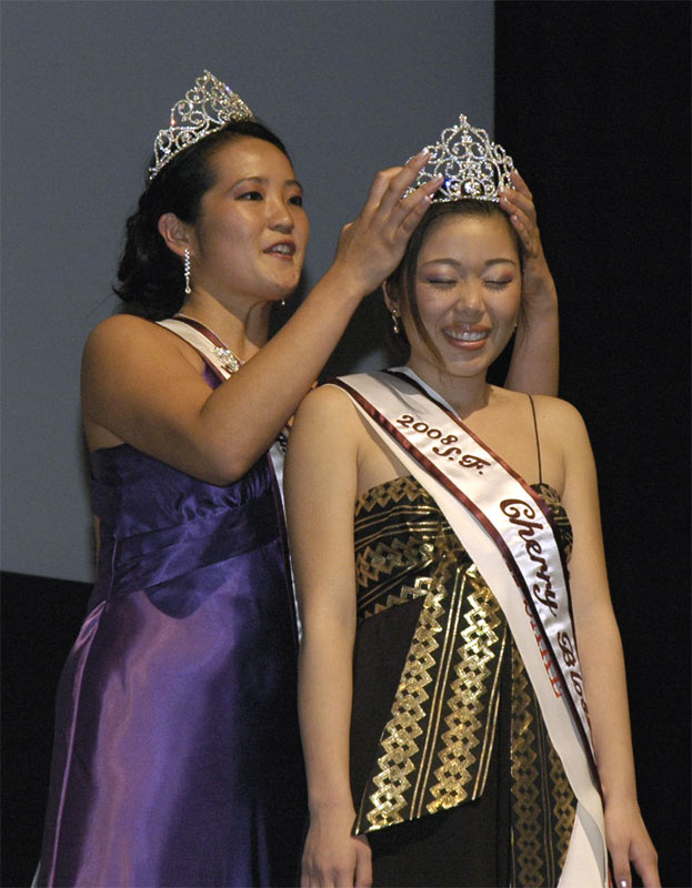 桜祭りのクイーンなんですが、いつも「?」系のお嬢が集まるんですよね。 これって結構政治的なものが影響するらしいですよ。 優勝したお嬢は、かの有名大学UHマノア卒なので、なかなかの才女ですね。 はい、私の後輩にあたります。