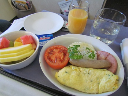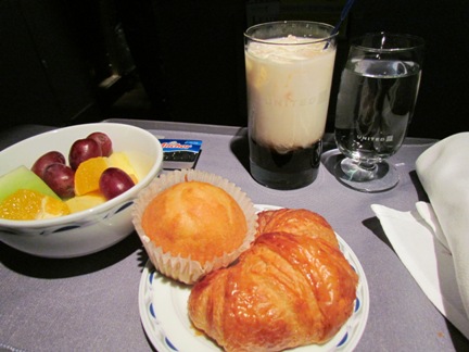 UAのファーストクラスでは朝ごはんが出ましたけど