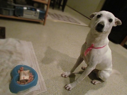 いつものドライフードとは違ってフレッシュな犬飯はとってもおいしかったようです