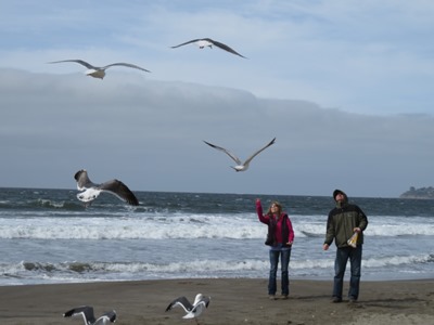 本当に楽しいらしく かなりの長い時間カモメたちと戯れていました