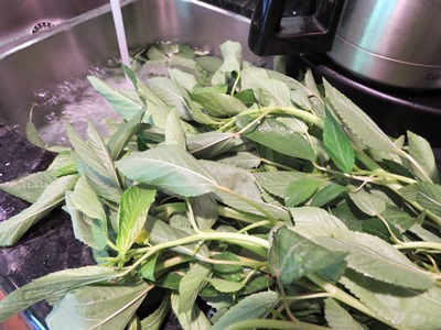 僕のモロヘイヤの調理法は至ってシンプル 葉っぱだけをむしって 水ですすいて茹でるだけ