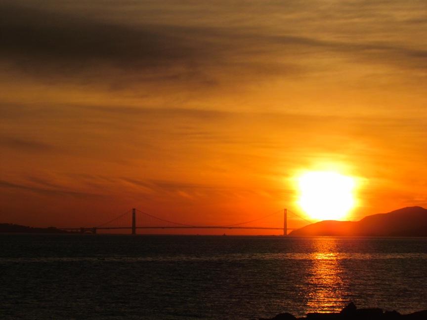 最近はこういう犬公園に行っても散歩紐つけたままでの行動が多くなりました この公園から ゴールデンゲートブリッジにに沈む夕日がとってもきれいでした