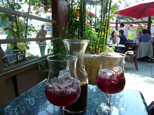 そこで僕たちも早速 いい場所を確保して座って カクテルと食べ物をオーダーしてみました