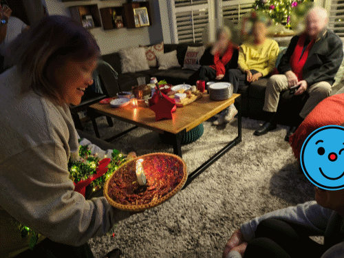 こんな感じで、以前は深夜まで続いていたパーティーですが、今回は午後9時にはお開きに。皆さん「メリークリスマス!良いお年を!」と元気に挨拶して帰路につきました。セミ・シニア世代のクリスマスパーティーでした~♪